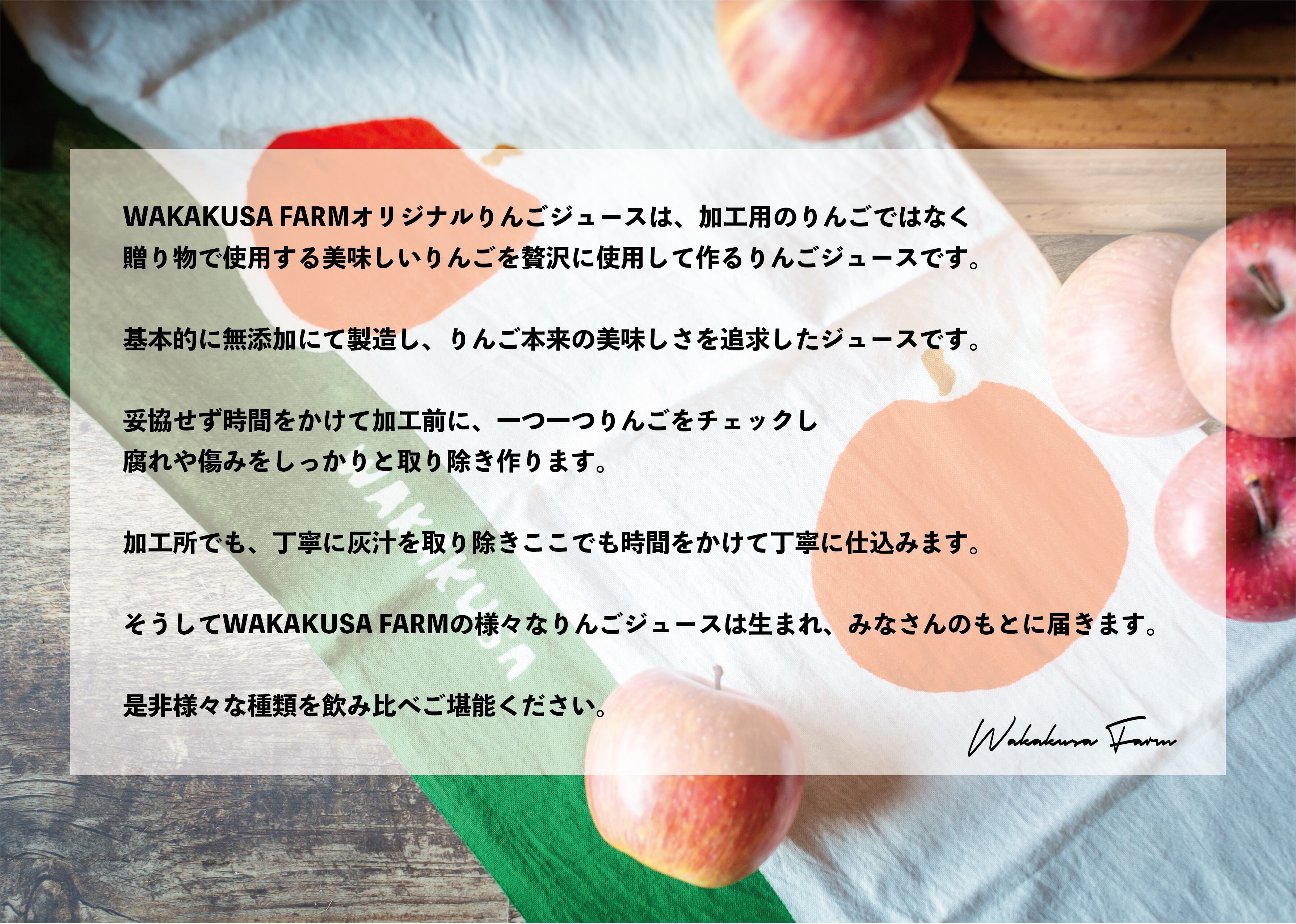 小さなお子さまからご年配の方まで、老若男女家族みんなで楽しんで頂けて、あまりの美味しさにみんなが笑顔になるりんごジュースです。